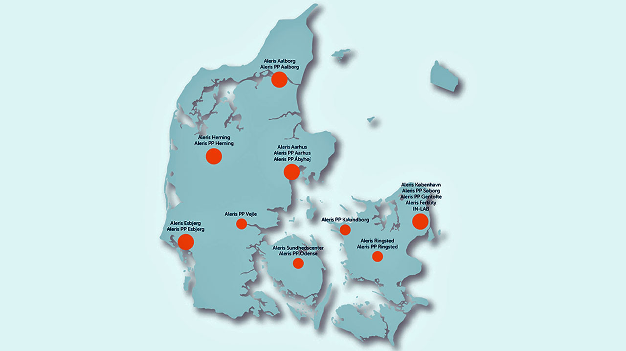 Aleris er Danmarks største private sundhedsvirksomhed – med privathospitaler i Aalborg, Aarhus, Esbjerg, Herning, Odense, København og Ringsted.