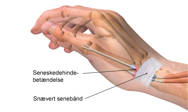 Senerne til fingre og håndled løber gennem snævre seneskeder på deres vej fra musklerne i underarmen til den knogle, hvor de fæstner. I seneskederne kan der opstå irritation af det glidevæv, der omgiver senerne. Det betyder, at vævet hæver op, og afklemmes i den snævre seneskede. Ofte opstår seneskedehindebetændelse ved senerne til tommelfingersiden i håndleddet.